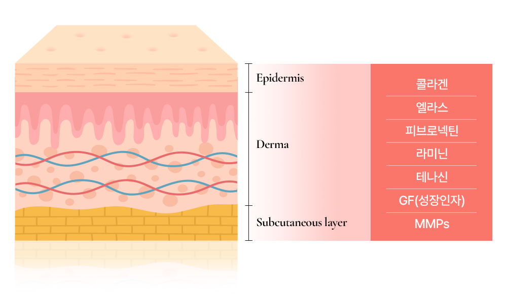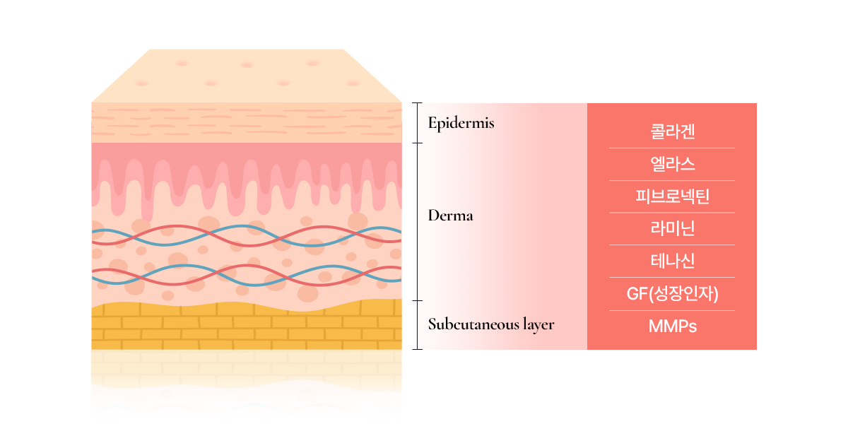 이 ECM은 진피세포의 지지대 역할을 하며 콜라겐과 엘라스틴 생성을 유도해