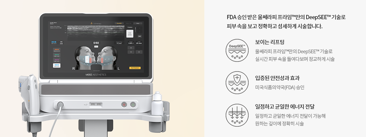 울쎄라피 프라임은 기존 울쎄라보다 더 깊고 선명해진 초음파 해상도와 DeepSEE™ 기술로 타깃층을 더욱 정밀하게 확인할 수